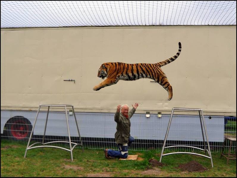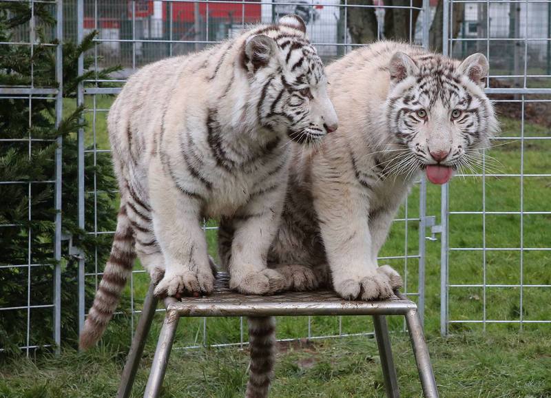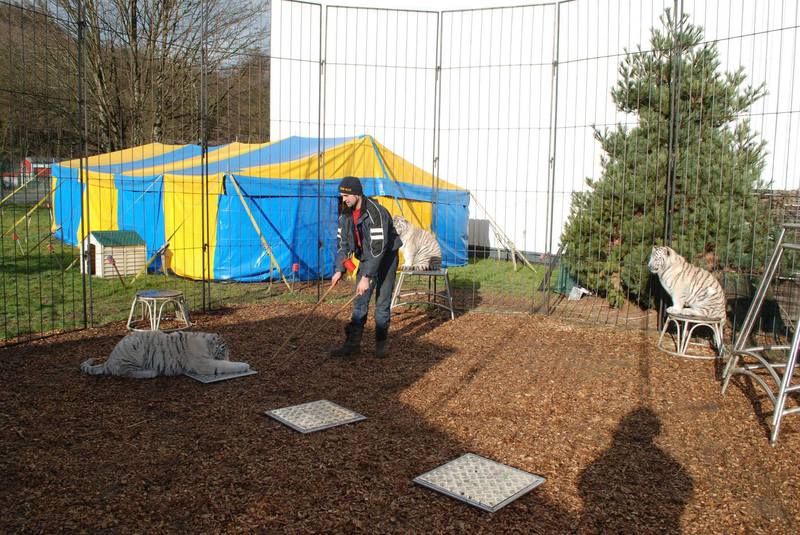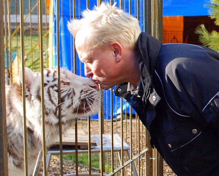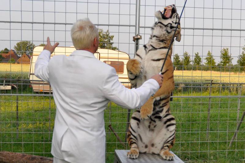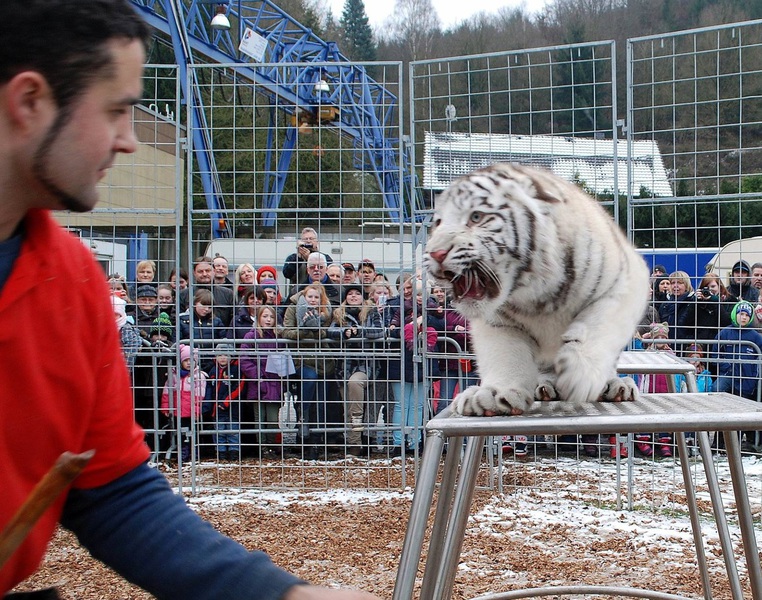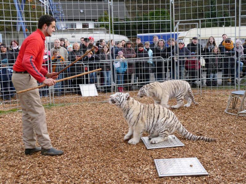 charmante Raubtier-Dressur mit den weißen Königstigern