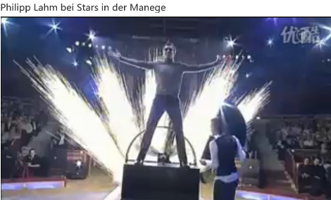 jacke kopfüber hängend am brennenden Seil bei "Stars in der Manege".